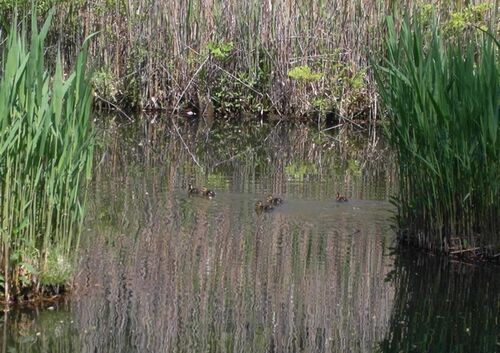 日曜日朝の善福寺公園はきょうも快晴。ますます初夏の陽気。 バンのヒナが生まれたというので下池をじっくり観察。しかし、親の姿はあるがヒナはいない。 と、アシの茂みあたりを泳ぐ小さな群れを発見。 ナント、カルガモのヒナ! 5、6羽いるだろうか、素早…