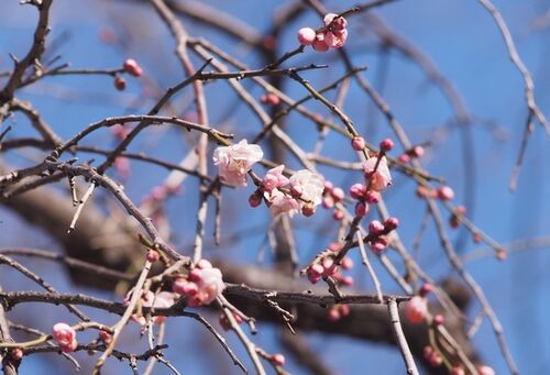 土曜日朝の善福寺公園は快晴。時折強い風が吹く。 大雪の翌日に行って以来ひさしぶりの公園。 雪はまだ残っていて、歩きにくい。 池も半分以上凍っている。 ロウバイの開花が進んでいた。 サービスセンター前のウメが咲いた。 いつもここのウメが一番早く開…