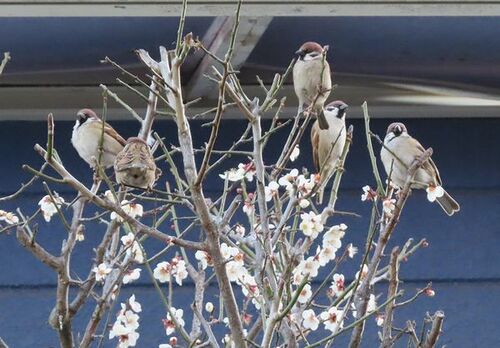日曜日朝の善福寺公園は快晴。北風が冷たいが、日なたはぬくぬく。 公園に着くと、ウメの木にスズメがたくさん。 スズメはウメの蕾を食べちゃう習性があるらしいが、花には興味がないのか。 ただし、サクラの花の蜜は好きで花をちぎって食べるので“花散らし…