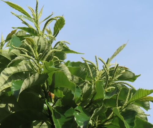 火曜日朝の善福寺公園は快晴。きのうの雨とは一転、夏の日差し。 公園のクリの木から長いヒモ状の花芽が伸びている。 開花が間近なのだろうか。 クリは雌雄同株で、枝から尾状の花序をやや上向きに出す。 花序につく花はほとんどが雄花で、基部に雌花がつく…