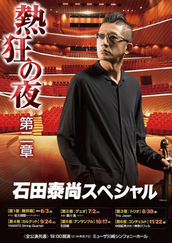 カリスマヴァイオリニスト石田泰尚の「石田泰尚スペシャル 熱狂の夜第二章」第3夜「トリオ」。 ミューザ川崎シンフォニーホールを舞台に、月に1夜ずつ、ソロによる無伴奏から始まってデュオ、トリオ、カルテット、アンサンブル、そして最後はコンチェルトと…
