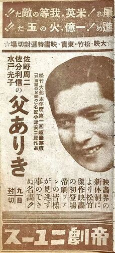 U-NEXTで配信していた日本映画「父ありき」。 1942年(昭和17年)の作品。 監督・小津安二郎、脚本・池田忠雄、柳井隆雄、小津安二郎、音楽・彩木暁一、撮影・厚田雄治、出演・笠智衆、佐野周二、津田晴彦、坂本武、水戸光子、佐分利信ほか。 太平洋戦争開戦…
