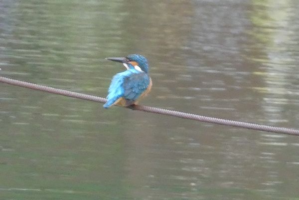 けさは公園内を散歩していると、行く先々でカワセミと出会う。