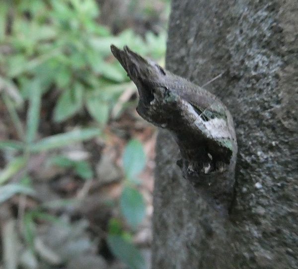 コンクリート製の疑木を本物の樹木と間違えたのか、ここで冬を越すことにした越冬サナギだろう。