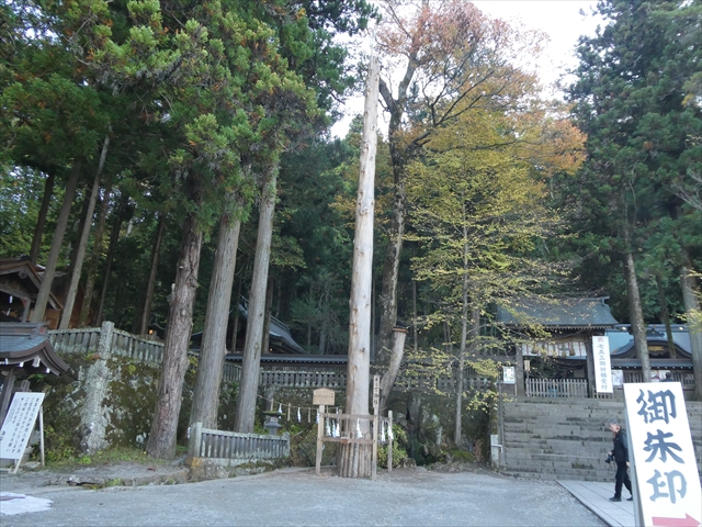 入口近くに本宮一之御柱がそそり立っていた。