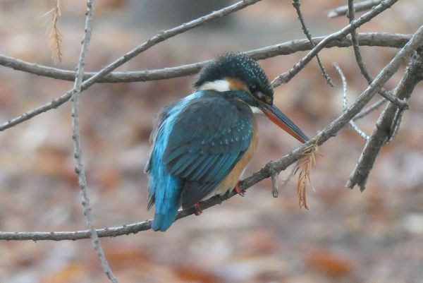 けさもサクラと小四郎らしいカワセミが2羽で仲良くエサ獲りしていた。