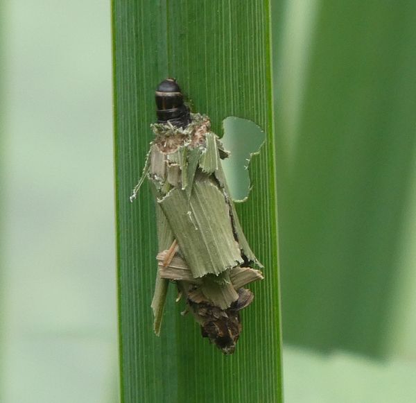 ただし、蓑から出て飛んでいくのはオスだけで、メスは一生を蓑の中ですごし、オスを蓑の中に呼び込んで交尾し、蓑の中に卵を産んで一生を終えるという。