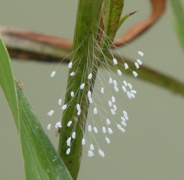 上池をめぐっていると、イネ科植物の茎から不思議なものが伸びている。