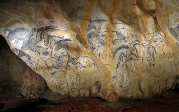 広大な洞窟の壁には400点を超える動物画を含む約1000点のペトログリフ(線刻・石彫)やペトログラフ(岩絵・壁画)が描かれていて、制作年代は3万2千年〜3万7千年前の後期旧石器時代と推定される。まだネアンデルタール人が地球を闊歩していた時代だ。